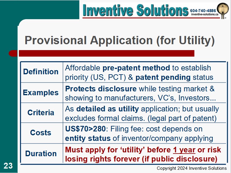 > Click here for a discussion about writing & filing preliminary applications.